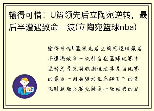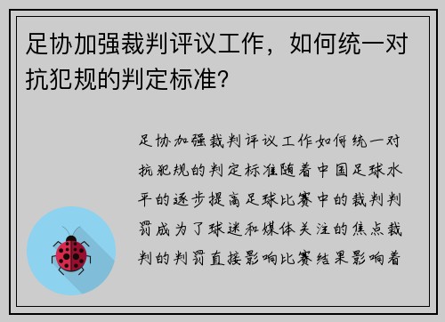 本文将探讨尤文图斯在比赛中展现出的强大团队精神,并从四个方面详细分析其如何在比赛中取得胜利。,本文会通过简要的总结概括整个文章的内容,帮助读者快速了解尤文图斯如何通过团队合作赢得比赛。接着,文章将从战术执行、球员间的默契配合、教练的战略指导和团队文化四个方面,深入探讨尤文图斯如何通过这些方面的表现展现出其强大的团队精神。最后,文章将对尤文图斯的比赛胜利进行总结,强调团队精神在比赛中的关键作用。 1...